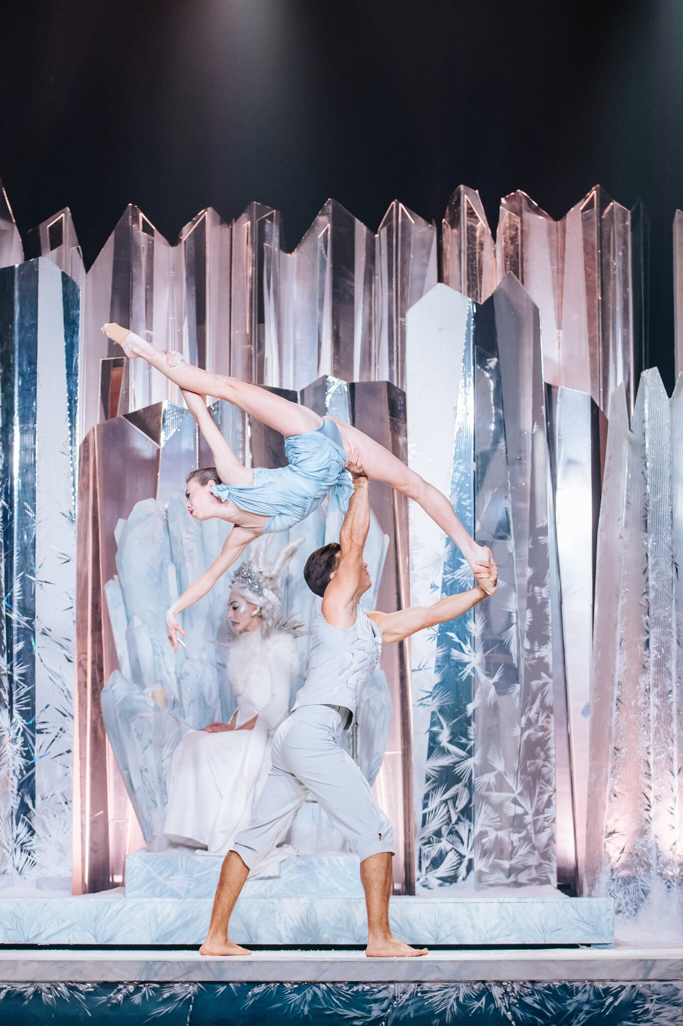 The sparklingly frozen fairy-tale scenes come to live before the very eyes of the audience who become active participants of the show while moving around with the Elf, the show’s master of ceremonies to experience the different acts. The story evoking the characters and narratives of classic tales leads us to a world of glittering ice made by the Snow Queen who had lost her faith in human emotions and froze everything and everyone. The audience and the performers search for the warmth of love, the hope of light in the spectacle’s space filled with enthralling illusions and spellbinding feats.
